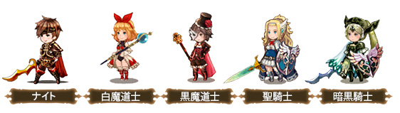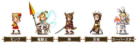 游戏中有超过30种的职业,每个职业都有各自的强项,比如擅长物理攻击,如骑士、武僧;魔法系,如黑魔导、赤魔导;有些则是物理魔法双修的职业,如暗黑骑士与圣骑士;有些人物则是回復支援角色,如白魔导与贤者。玩家可自由搭配职业组成队伍。