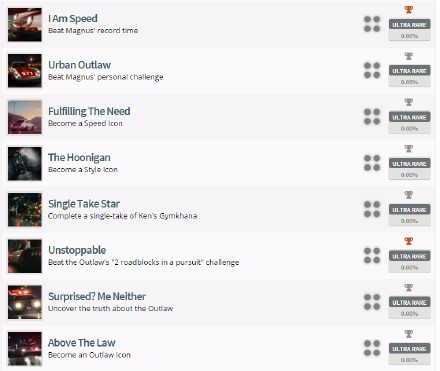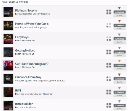 《极品飞车》奖杯列表公布,将有31个奖杯(包括白金)。本作已于10月23日完成开发,进入碟片压制阶段,将于11月3日在PS4,XBOX ONE和PC平台发售