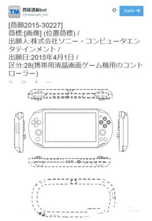 根据“商标速报bot”不久前发布的一条Tweet,SCE(索尼电脑娱乐)于4月1日提交了一份新的申请,所附图片中用虚线勾出了一台PSV主机的轮廓,该商标的类别为28(便携式液晶画面游戏机专用控制器),难道这就是新型号的PSV主机?